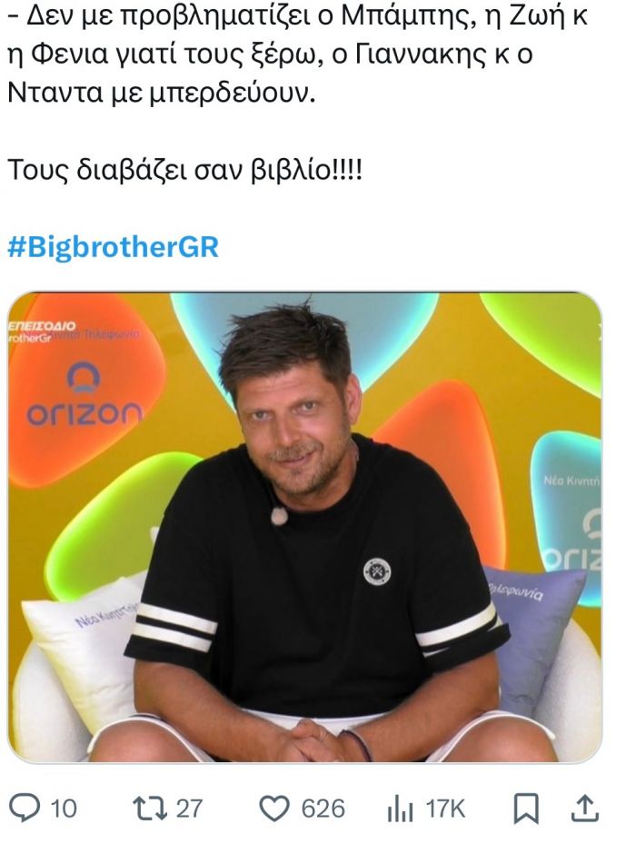 Μια δίκαιη αποχώρηση σύμφωνα με το X αφού ο συγκεκριμένος παίκτης ήταν γνωστός και για τις δολοπλοκίες του και για τον άσχημο τρόπο με τον οποίο αντιμετώπιζε όποιον του μιλούσε «χυμένος» πάντα στον καναπέ ή έχοντας τα πόδια στα τραπέζια.