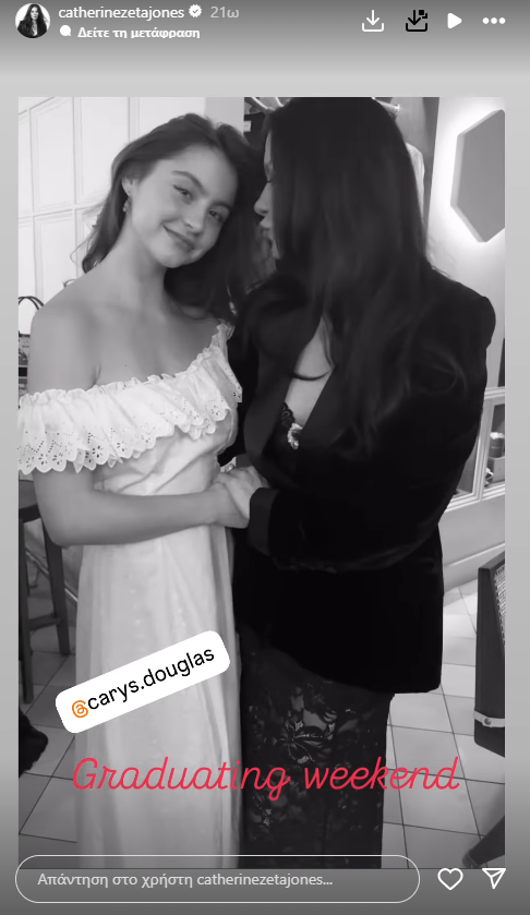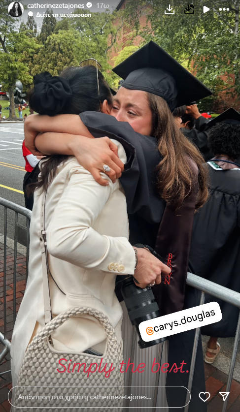 Η Carys Zeta Douglas αποφοίτησε από το Πανεπιστήμιο Brown και ένα νέο κεφάλαιο της ζωής της «μόλις ξεκίνησε». Οι γονείς της δηλώνουν περήφανοι και η ανάρτηση της Catherine Zeta-Jones μαζί με τον Michael Douglas και την κόρη τους είναι ό,τι πιο γλυκό είδαμε σήμερα.