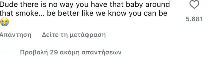 Μια πρόσφατη ανάρτηση όμως, ήταν ο λόγος που πολλοί ακόλουθοί του έγιναν αρκετά σκληροί με τα σχόλιά τους, τονίζοντάς του πως πρέπει να συγκεντρωθεί, γιατί πλέον είναι και πατέρας, επομένως θα πρέπει να φροντίζει τον γιο του και όχι για παράδειγμα να τον εκθέτει σε ναρκωτικές ουσίες.