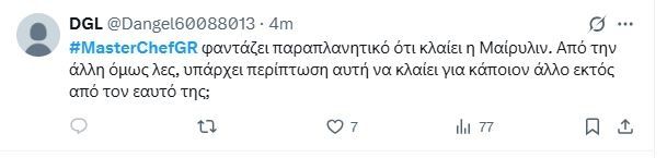 Το παράλογο συνεχίστηκε μετά το τέλος του επεισοδίου, όταν μεταδόθηκε το τρέιλερ του σημερινού επεισοδίου. Εκεί βλέπουμε την Μαίρυλιν να κλαίει. Φεύγει εκείνη τελικά από τον διαγωνισμό ή κάτι άλλο συνέβη;