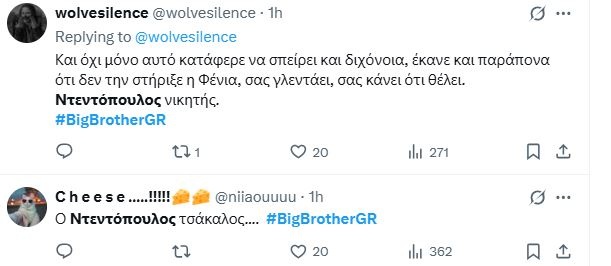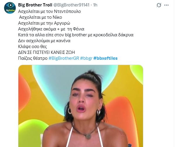 Αδιαμφησβήτητα ο αγρότης από την Κορινθία είναι το μεγάλο φαβορί για νικητής του φετινού Big Brother. Είναι θέμα ημερών να αποχωρήσουν Φένια και Ζωή γιατί όσο παραμένουν στο παιχνίδι, απομακρύνουν το κοινό που το παρακολουθεί.