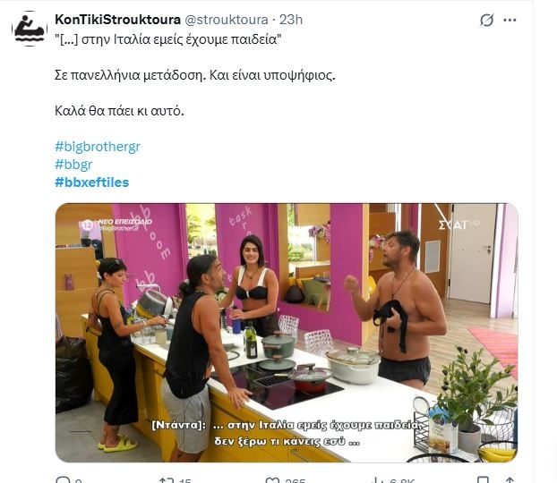 Λίγες ώρες νωρίτερα ο παρουσιαστής του Big Brother Πέτρος Λαγούτης, που κατά γενική ομολογία μένει αμέτοχος στις μεγάλες κρίσεις του reality - αυτό δεν είναι και πάντα το σωστό τηλεοπτικά - μίλησε στην εκπομπή «Καλύτερα δε γίνεται» απαντώντας στα αρνητικά σχόλια, κυρίως αυτά που ανέφεραν ότι επέλεξε να κάνει το project για την καλή αμοιβή που θα έπαιρνε ως παρουσιαστής.
