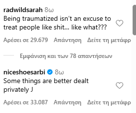 Λίγο αργότερο, η παραπάνω ανάρτηση προωθήθηκε από τον ίδιο στα Insta Stories, γράφοντας: «Σταματήστε να με ρωτάτε αν είμαι καλά. Σταματήστε να με ρωτάτε πώς τα πάω», προσθέτοντας μετά: «Γιατί ξέρω πώς είναι η ζωή για όλους μας. Είναι σκληρή. Ας ενθαρρύνουμε τους ανθρώπους μας να μην προβάλλουν τις ανασφάλειές μας ο ένας στον άλλο. Η ανησυχία σας δεν εκφράζεται ως φροντίδα. Είναι απλά καταπιεστική, περίεργε».