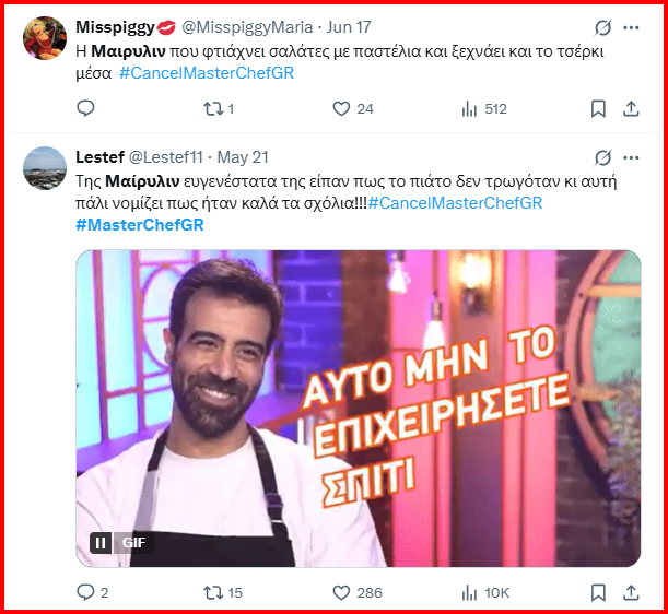 Όμως ακόμη είναι στο επίκεντρο διάφορων σχολίων, οι δύο γυναίκες που έμειναν στην τελική 5αδα του διαγωνισμού, η Χριστιάνα και η Μαίρυλιν. Η δεύτερη για πρώτη φορά μέσω μίας ανάρτησής της στο Instagram αποφάσισε να μιλήσει τόσο για το πώς βίωσε την περιπέτεια του μαγειρικού διαγωνισμού, όσο και για τα εκατοντάδες σχόλια που δέχθηκε από το κοινό. Καθόλου κολακευτικά τα περισσότερα.