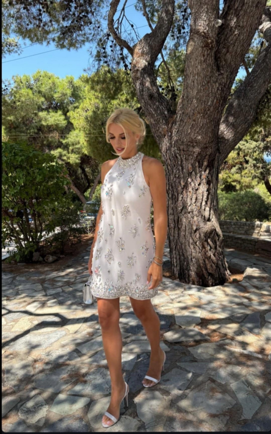 Λίγο αργότερα, μέσα από ακόμη ένα story είδαμε το look που επέλεξε για τη βάπτιση του ενός έτους γιου της. Ένα κομψό λευκό, μίνι, κεντημένο φόρεμα με παρτούς ώμους που της πήγαινε πολύ, συνδυασμένο με λευκά σανδάλια και ασημένια τσάντα.