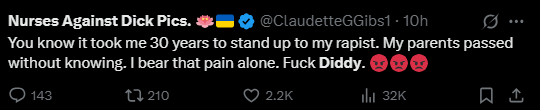 «Τα χρήματα έχουν μεγαλύτερη σημασία από τη δικαιοσύνη των θυμάτων», έγραψε ένας χρήστης στο Χ για την απόφαση στη δίκη του Diddy, ενώ ένας άλλος έκανε την εξής ανάρτηση:
