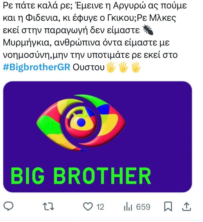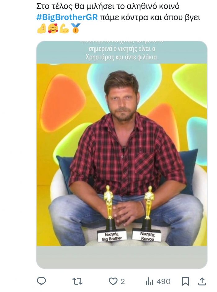 Λίγο πριν τον τελικό του Big Brother και η τελευταία αποχώρηση έκανε το κοινό να αντιδράσει στο X. Ο παίκτης που δεν κατάφερε να φτάσει στην τελική 7άδα ήταν ο Χρήστος Γκικουρίας, ο οποίος ήταν υποψήφιος μαζί με τις Φένια, Αργυρώ και Ζωή. Μια αναμέτρηση ιδιαίτερα δυνατή και σημαντική αν σκεφτούμε πως ο Χρήστος ερχόταν πολύ συχνά σε αντιπαράθεση και με την Ζωή και με την Φένια, δηλώνοντας πως εκείνος θα είναι ο παίκτης που θα τις βγάλει εκτός παιχνιδιού.
