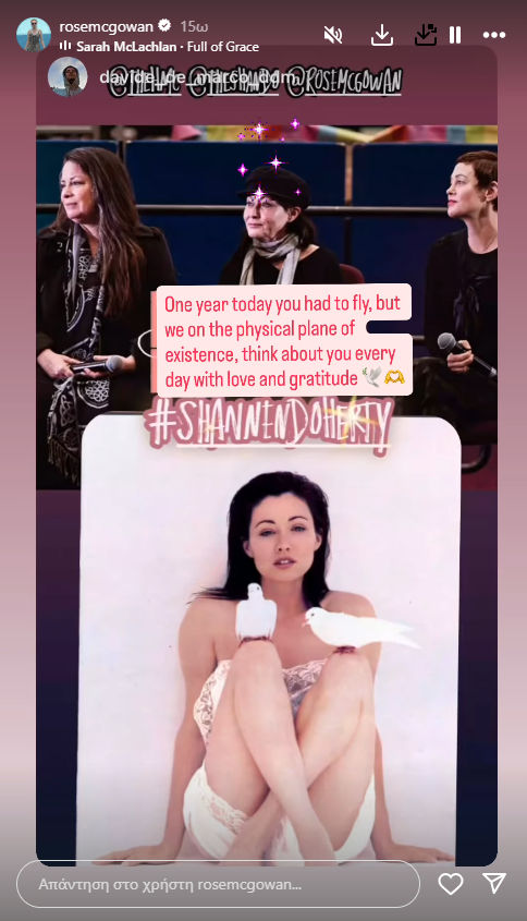 Η McGowan από την πλευρά της, δημοσίευσε μια σειρά από Insta Stories, συμπεριλαμβανομένης μιας παλιάς φωτογραφίας της Doherty.