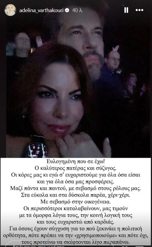 Πάντως η σύζυγος του Χάρη Βαρθακούρη έκανε ένα ταξίδι ζωής με τις δυο κόρες τους, ενώ λίγους μήνες νωρίτερα είχε εξομολογηθεί πως έχει επιλέξει να είναι στο σπίτι μαζί τους και να μην εργάζεται -στην τηλεόραση για παράδειγμα- κάτι που προκάλεσε διάφορες διαδικτυακές και τηλεοπτικές συζητήσεις (ρίξε μια ματιά εδώ).