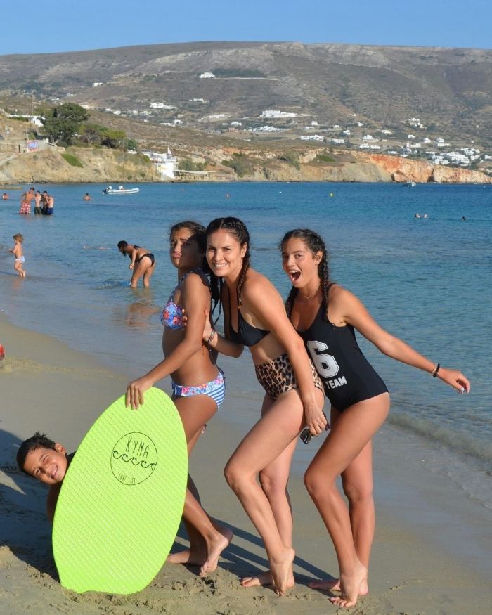 Όσο για τα κορίτσια, η Μαλένα αν ρίξεις μια ματιά στο προφίλ της θα δεις πως ακολουθεί τα βήματα της μαμάς της παράλληλα με τις σπουδές στις Πολιτικές Επιστήμες και τις Διεθνείς Σχέσεις. Η Κορίνα Στεργιάδου υπήρξε ένα από τα πιο γνωστά μοντέλα των 90s.