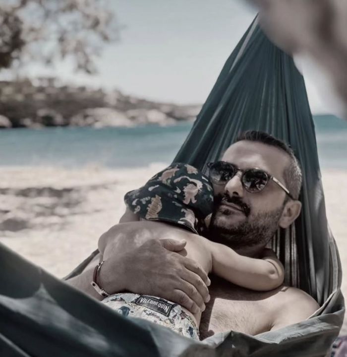 Με μεγάλη προσοχή πάντα, και χωρίς να φαίνονται τα χαρακτηριστικά του προσώπου του, ο Λεωνίδας Κουτσόπουλος έχει μοιραστεί αρκετά στιγμιότυπα με τον γιο του Κίμωνα.