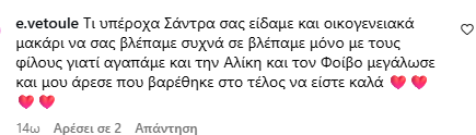 Το πόσο όμορφα πέρασαν οι τρεις τους το επιβεβαίωσε και η Αλίκη Κατσαβού μ' ένα σχόλιό της, στο οποίο έγραψε: