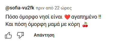 Ένας άλλος επίσης σχολίασε: «Λατρεύω τα βίντεο που κάνεις με την κόρη σου! Είστε υπέροχες! Η σχέση σας ιδανική και ζηλευτή! Να τη χαίρεσαι!» και πράγματι έτσι φαίνεται να είναι η σχέση μεταξύ τους σε κάθε βίντεο που ανεβάζουν.