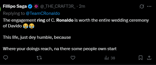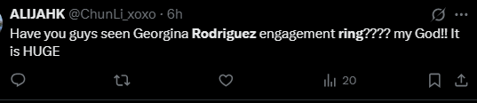 Στις 11 Αυγούστου, ο 40χρονος Πορτογάλος ποδοσφαιριστής και το 31 ετών μοντέλο από την Αργεντινή ανακοίνωσαν τον αρραβώνα τους, αλλά αυτό που κέντρισε περισσότερο από οτιδήποτε άλλο τα βλέμματα ήταν το διαμαντένιο δαχτυλίδι της μέλλουσας νύφης, το οποίο είναι τόσο τεράστιο σε μέγεθος που έγινε αμέσως είδηση.