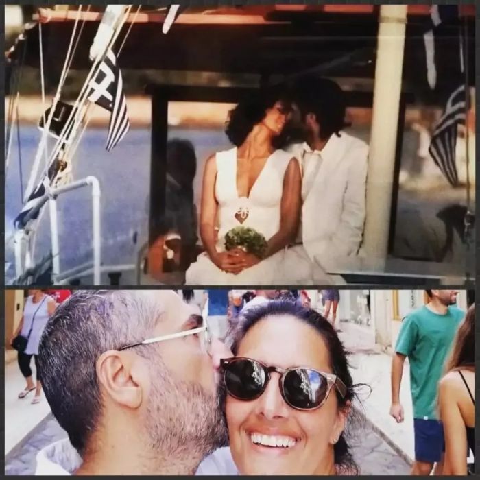 Δημοσιεύοντας μια φωτογραφία τους από την παραλία, έγραψε τα εξής: «21 χρόνια γάμου! 2 παιδιά σε σπουδές, 1 χνουδωτό δεκάχρονο και αμέτρητες αναμνήσεις, όμορφες στιγμές, δύσκολες στιγμές και πολλές φωτογραφίες να μας θυμίζουν από που ξεκινήσαμε και πόσο μακριά έχουμε φτάσει».
