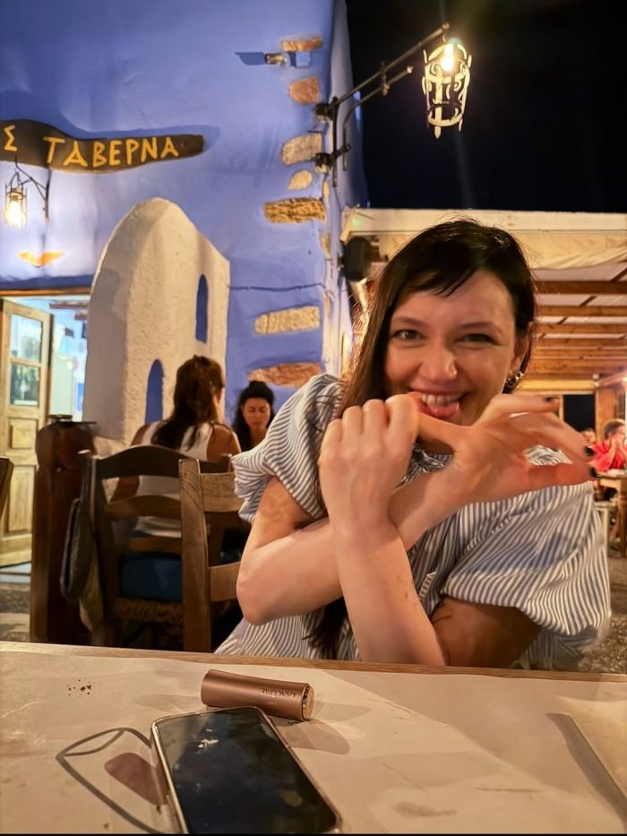Ακόμη τις διακοπές της φαίνεται να απολαμβάνει η δημοσιογράφος όμως βρήκε λίγο χρόνο αφενός να επικοινωνήσει με τους διαδικτυακούς της φίλους.