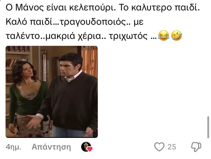 Ο Βασίλης Γιακουμάρος λοιπόν, όπως είχε δηλώσει δεν έχει κανένα πρόβλημα που τον αποκαλούν μέχρι και σήμερα «Μάνο». Κάπως έτσι, εκείνος και η Ιωάννα Πηλιχού αναβίωσαν μια από τις πιο ωραίες σκηνές τους στα social media.
