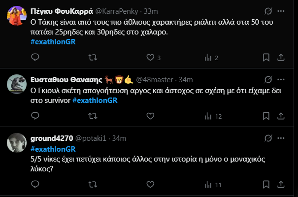 Το Exathlon ξεκάθαρα δεν είναι Surivor και όλα αυτά τα δύσκολα ομολογουμένως αγωνίσματα δεν είναι μόνο κουραστικά για τους παίκτες αλλά και τους τηλεθεατές. Δεν έχουν με λίγα λόγια το σασπένς των αγώνων παλαιότερων reality.