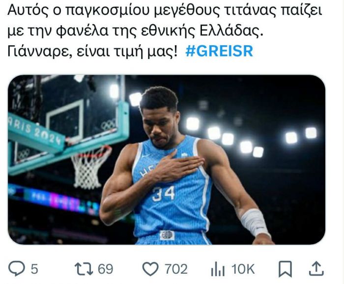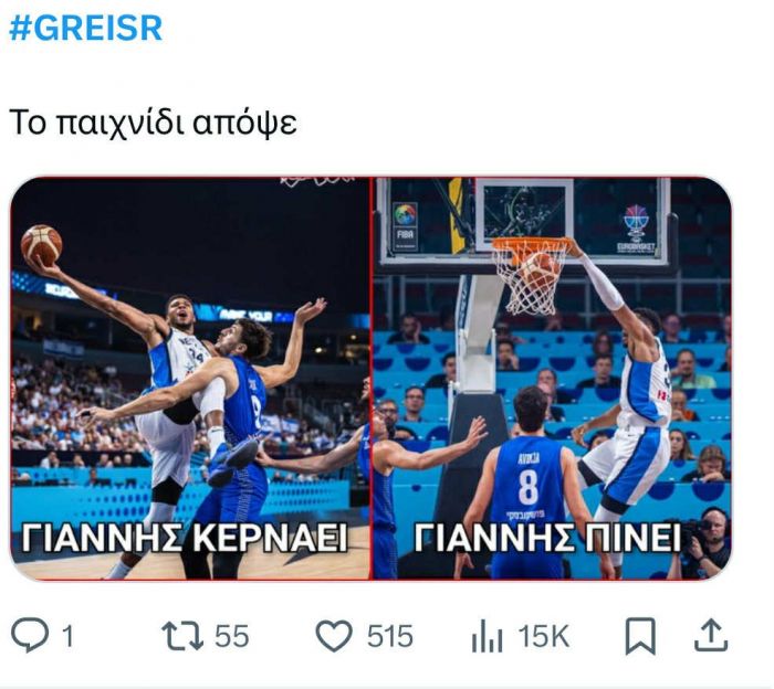 Τα πράγματα πάντως πήγαν εξίσου σαρωτικά και στο X με το #GREISR να είναι πρώτο στα trends και φυσικά τα περισσότερα σχόλια να αφορούν τους δυο πρωταγωνιστές, τον Γιάννη Αντετοκούνμπο και τον Αλέξανδρο Σαμοντούροβ.