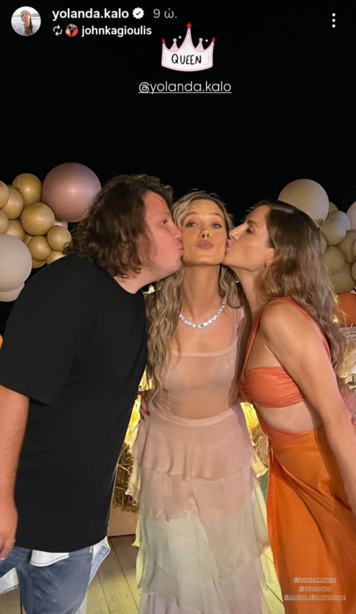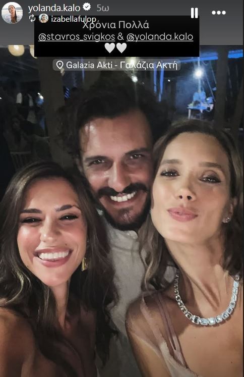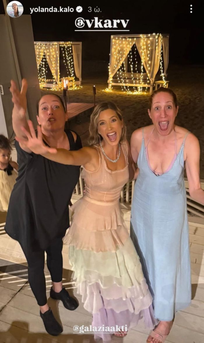 Πολλοί φίλοι στο κάλεσμα του ζευγαριού και όλοι φάνηκε ότι διασκέδασαν με την καρδιά τους. Οι φωτογραφίες έρχονται ως ντοκουμέντα και από τη μεγάλη παρέα δεν θα μπορούσαν να λείψουν και οι φίλοι από το Grand Hotel όπου βλέπουμε τη Γιολάντα Καλογεροπούλου να χορεύει ξέφρενα με τον Μιχάλη Συριόπουλο [a.k.a. Κόμη Ντεσλόρ] και την Κόρα Καρβούνη, η οποία στη σειρά παίζει την πεθερά της «Ελένης» που ερμηνεύει η Γιολάντα, με την οποία οι σχέσεις είναι πάντα στο κόκκινο!