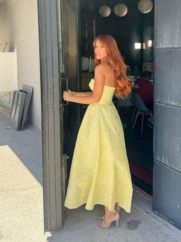 Φυσικά, τις εντυπώσεις έκλεψε η ανανεωμένη παρουσιάστρια που επέλεξε ένα κίτρινο strapless φόρεμα σε γραμμή Α αλλά και το ανανεωμένο κούρεμα της Χρηστίδου που εμφανίστηκε με πολύ μακριά μαλλιά και αφέλειες αλλά και με ένα πιο ζεστό καστανοκόκκινο χρώμα επί κεφαλής.