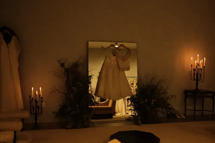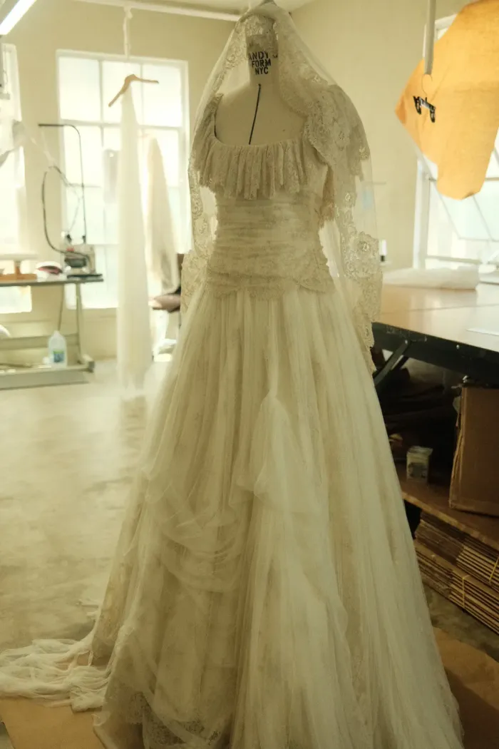 Η τραγουδίστρια πέρασε ατελείωτες ώρες με τις σχεδιάστριες μέχρι τα ξημερώματα, δουλεύοντας πάνω σε λεπτομέρειες όπως δαντέλα στη φούστα και μικρά φιογκάκια που της χάρισαν μια βικτωριανή αίσθηση. Μάλιστα, όλα τα fittings έγιναν βράδυ, υπό το φως των κεριών, για να υπάρχει μια ατμόσφαιρα πιο προσωπική και μυστική.