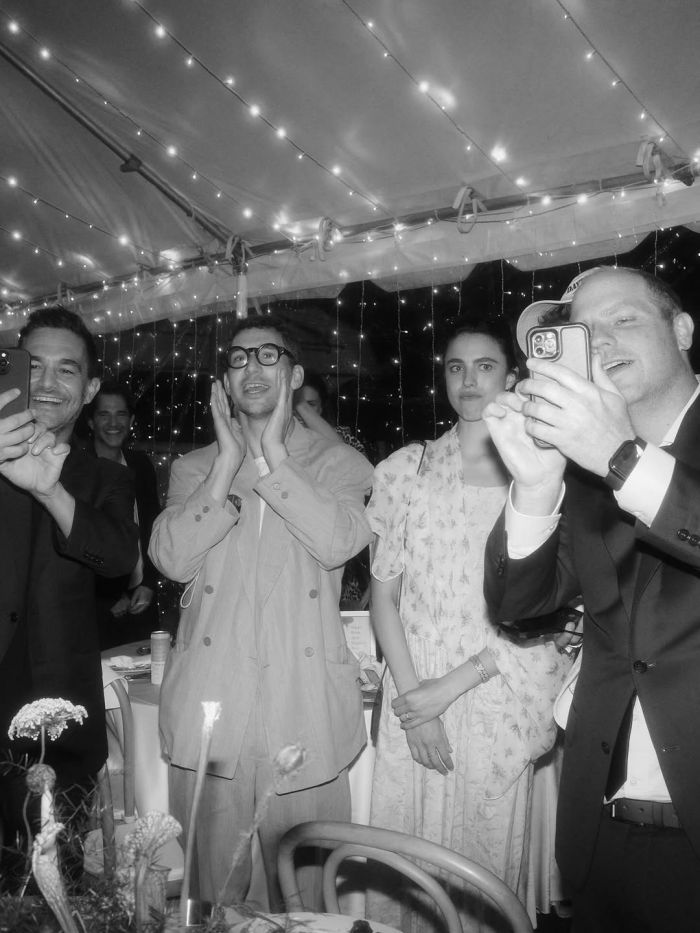 Στα πρώτα στιγμιότυπα, η ίδια και ο Dufrene ποζάρουν και φιλιούνται πάνω σε ένα σκάφος, ενώ στη συνέχεια βλέπουμε καλεσμένους όπως ο Jack Antonoff και η Margaret Qualley να πανηγυρίζουν για τους νεόνυμφους.