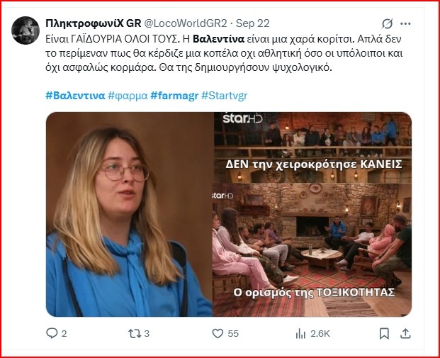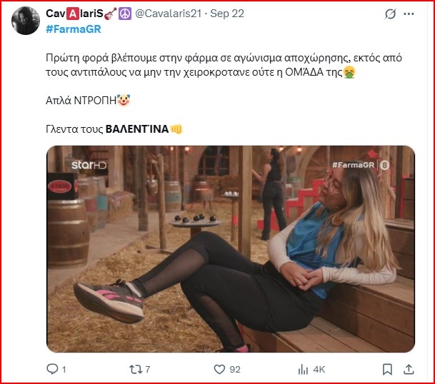 Η αήτητη Βαλεντίνα της Φάρμας είναι το πιο viral πρόσωπο στο Χ λίγο πριν τη νέα διπλή αποχώρηση