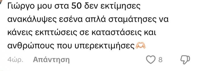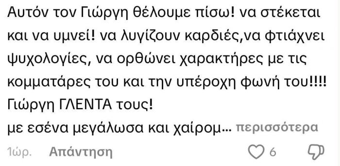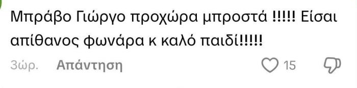 Oι θαυμαστές του Γιώργου Μαζωνάκη τον αποθέωσαν γράφοντας πως «αυτόν τον Γιώργο θέλουν» και πως δεν τους πήρε τόσα χρόνια για να εκτιμήσουν την αξία του.
