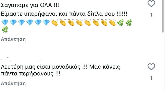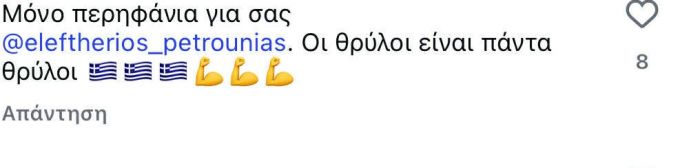 Περήφανη δεν ήταν όμως, μόνο η Βασιλική Μιλλούση για τον Λευτέρη Πετρούνια αλλά και όλοι σχολίασαν κάτω από την ανάρτησή του με πρώτο και καλύτερο τον Εμμανουήλ Καραλή - aka Manolo.