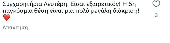 «Κάποιες φορές κερδίζεις και κάποιες φορές μαθαίνεις, έτσι είναι ο πρωταθλητισμός! Διορθώνουμε ό,τι χρειάζεται τώρα γιατί έχουμε πολύ δουλειά μέχρι το LA2028! Ευχαριστώ την οικογένειά μου που είναι πάντα δίπλα μου και όσους με στηρίζουν! Προχωράμε δυναμικά».