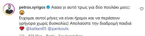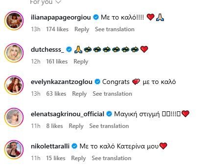 Φίλοι της Κατερίνας και του Παναγιώτη αλλά και απλοί followers και fans της παρουσιάστριας έσπευσαν να στείλουν τις ευχές τους.