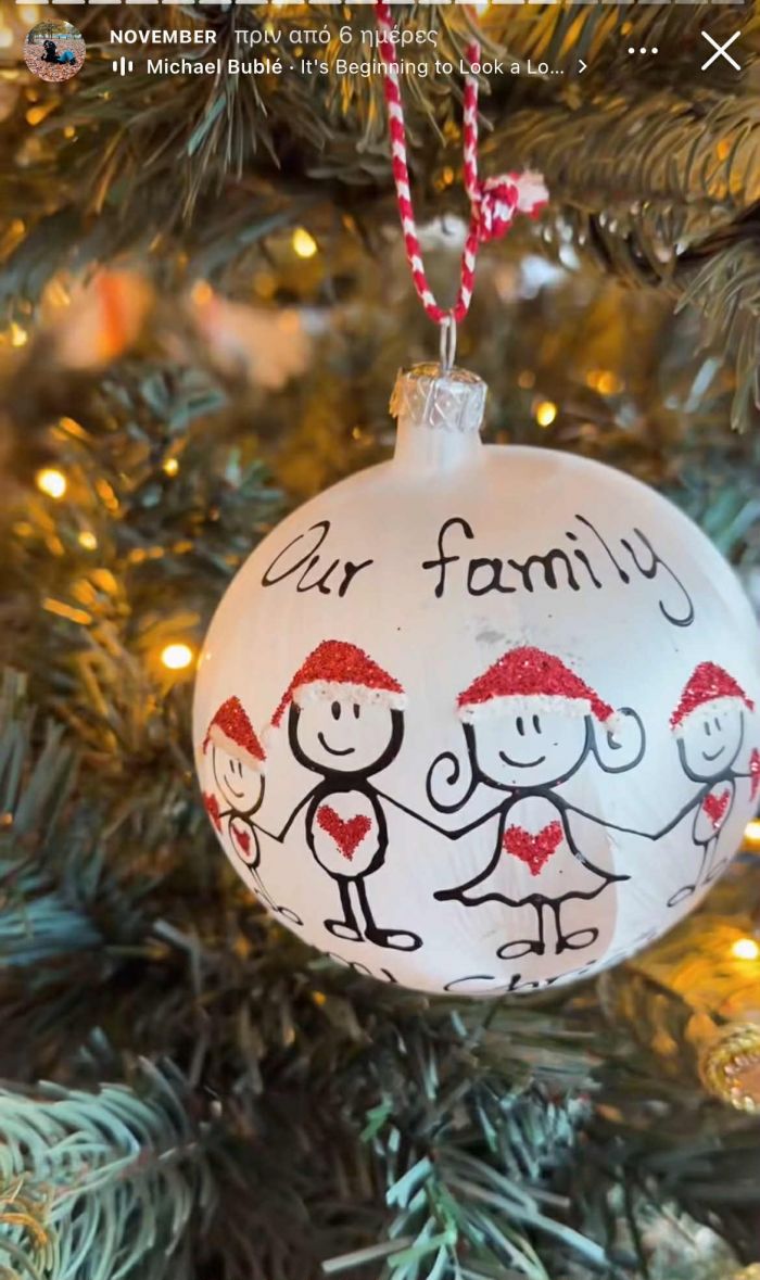 Από τις φωτογραφίες που δημοσίευσε η Εριέττα Κούρκουλου Λάτση στα social media της μπορέσαμε να δούμε και μια πολύ γλυκιά λεπτομέρεια στο χριστουγεννιάτικο δέντρο της. Μια χριστουγεννιάτικη μπάλα που είχε ζωγραφισμένη την οικογένειά τους. Παράλληλα, είδαμε και δύο πολύ τρυφερά στιγμιότυπα με τους γιους της.