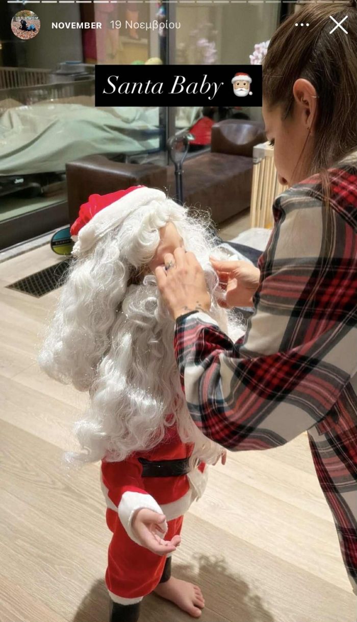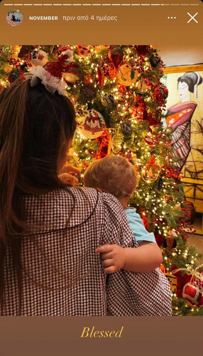 Στο ένα βοηθούσε τον μεγάλο της γιο, τον Νίκο να ντυθεί Άι Βασίλης και στο άλλο έχοντας στην αγκαλιά της τον Λέοντα, έβλεπαν το στολισμένο χριστουγεννιάτικο δέντρο.