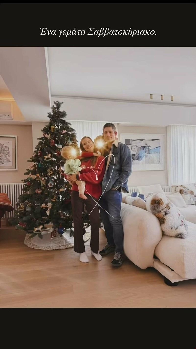 Η Εριέττα Κούρκουλου Λάτση με τον σύζυγο και τους δύο γιους τους στόλισαν επίσης το χριστουγεννιάτικο δέντρο τους, ενώ την παράσταση έκλεψε ο mini Άη Βασίλης ή αλλιώς ο μεγάλος γιος του ζευγαριού.