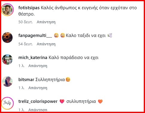 «Καλό ταξίδι μπαμπά μου θα ήθελα να σε είχα και άλλο ξεκουράσου ομορφιά μου σε αγαπώ πολύ»