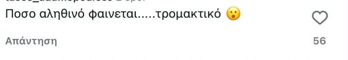 «Το πίστεψαν ότι γίνεται ξανά η σειρά. Φοβερό είναι. Σε λίγο δεν θα ξέρουμε τι είναι αλήθεια, τι πραγματικότητα. Λένε ότι θα γίνονται και ταινίες χωρίς ηθοποιούς πλέον. Έμπνευση και αλήθεια δεν μπορεί να έχει τίποτα από όλα αυτά. Θα δοκιμαστούνε πάρα πολλά. Το τι θα έχει ανταπόκριση είναι το θέμα. Είναι τόσο προσομοίωση η ζωή μας, που όλα τα έχω πιθανά», είπε χαρακτηριστικά η ηθοποιός.