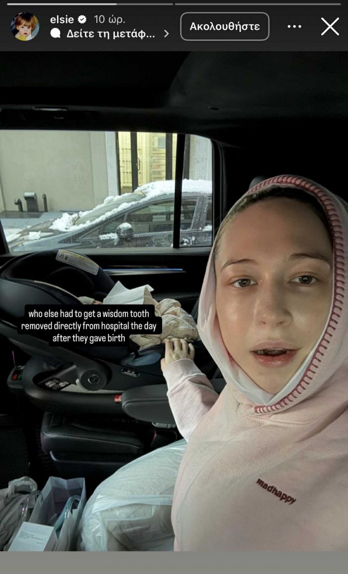 Mπορεί να έχουν περάσει λίγες μέρες από τη στιγμή που η Elsie έφερε στον κόσμο την κόρη τους με τον Davidson, ωστόσο η ίδια έκανε ακόμα μια επέμβαση. Όπως έγραψε στις φωτογραφίες που δημοσίευσε: «Ποιος άλλος θα έβγαζε τον φρονιμίτη του ακριβώς φεύγοντας από το νοσοκομείο, αφού γέννησε;».