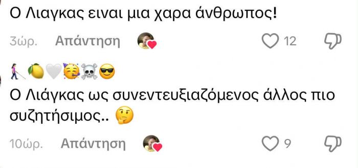Η τηλεοπτική αυτή συνάντηση των δύο παρουσιαστών στα social media είχε πολλά θετικά σχόλια, με πολλούς να αναφέρουν μάλιστα, πως μέσα από αυτή τη συνέντευξη συμπάθησαν περισσότερο τον Γιώργο Λιάγκα σε σχέση με την παρουσία του στο Πρωινό.