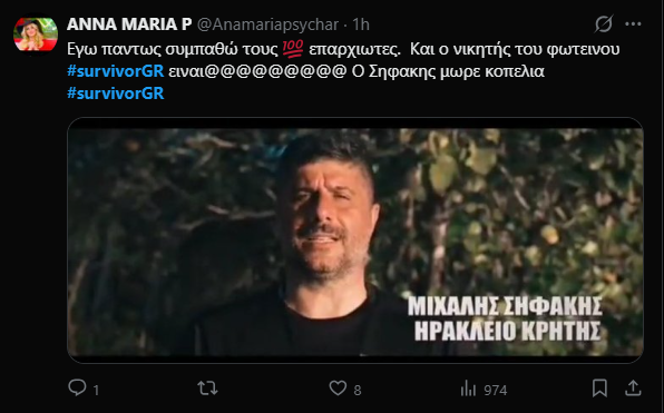 «Καλή αρχή στο Survivor. Άλλοι ξεκινούν σήμερα. Εγώ το κουβαλάω για πάντα».