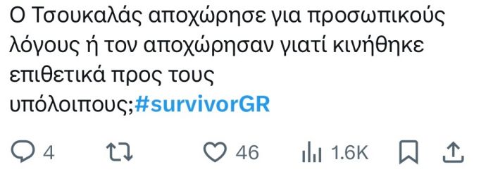 Μάλιστα, ο συγκεκριμένος παίκτης δεν αποχαιρέτησε ποτέ και κανέναν κι αυτό ήταν κάτι που έβαλε σε υποψίες το κοινό στο X το οποίο κατέληξε στο ότι μάλλον εξαιτίας της επιθετικής συμπεριφοράς του στο αγώνισμα επάθλου και των απαράδεκτων σχολιασμών του, όπως το «ανάπηρη» για την Δήμητρα από τους Επαρχιώτες, η παραγωγή τον ανάγκασε να αποχωρήσει. Βέβαια, αν ίσχυε κάτι τέτοιο θα ήταν προς τιμήν της, οπότε γιατί να μην το πει ο Γιώργος Λιανός;