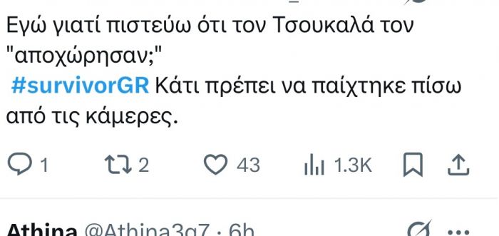 «1 διώχνουν οι μπλε, 10 φεύγουν κόκκινοι. Δεν γίνεται δουλίτσα έτσι», σχολίασαν στο X βλέπονταν την οικειοθελή αποχώρηση του Γιώργου Τσουκαλά από την ομάδα των Αθηναιών.