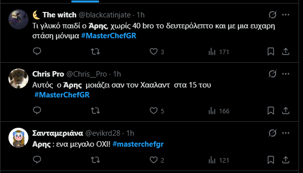 Ρίχνοντας κάποια βέλη στον Άρη, λέγοντας πς πρέπει να βελτιωθεί και στον Μάριο, γιατί στο σπίτι αντί να διαβάζει βιβλία μαγειρικής, διαβάζει μυθιστορήματα.