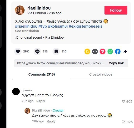 H Ρία Ελληνίδου απαντά για τον Αλεξάνδρου για 1η φορά και καλεί σε challenge θετικότητας τους haters:
