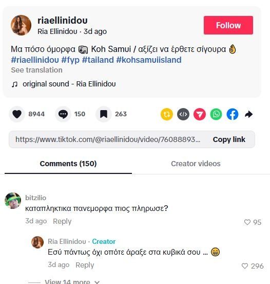 Η Ελληνίδου, παραμένει στην Ταϋλάνδη και αφού δέχεται κύμα από hate σχόλια, αποφάσισε να μιλήσει στους haters, καλώντας τους σε ένα challenge θετικότητας.