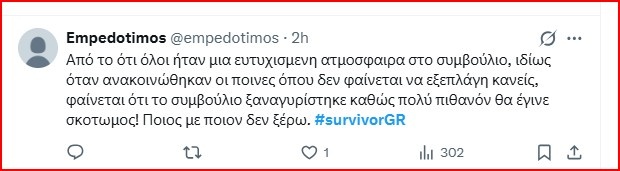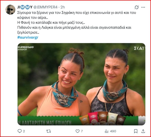 Η τιμωρία μπορεί να είναι επιεικής, αλλά προφανώς επειδή δεν αφορούσε και απόκτηση φαγητού ή μπορεί να ήταν η επικοινωνία με τους locals μικρής διάρκειας δεν ήταν τόσο αυστηρή. Εκτός αν ισχύει αυτό που αρκετοί φανς ανέφεραν, πως δεν θα το έφτανε η παραγωγή στα άκρα για να αποχωρήσει ο Μιχάλης Σηφάκης.