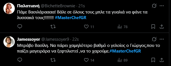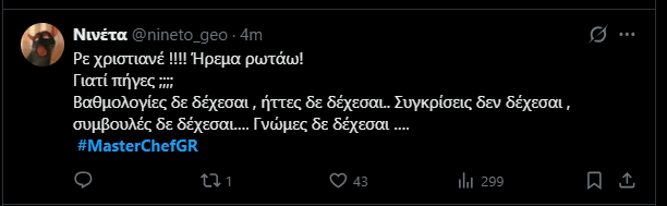 Η τοξικότητα και η ειρωνεία ακόμη και προς τους κριτές του MasterChef και το πείσμα του μπλε αρχηγού, να μην παραδεχτεί την ήττα του.
