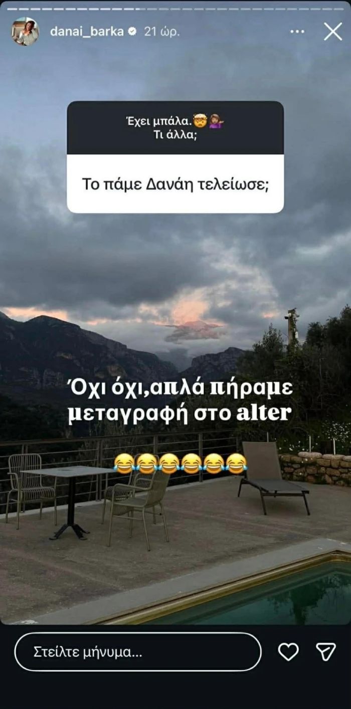 Η Δανάη Μπάρκα μπορεί να έχει πατήσει ένα pause στην τηλεοπτική της πορεία από τον Μάιο του 2025, ωστόσο σε πρόσφατο Q&A που έκανε στα social media δέχθηκε την πιο απρόσμενη ερώτηση από έναν/μία ακόλουθό της, όταν την ρώτησε αν το «Πάμε Δανάη!» κόπηκε. Η ίδια λοιπόν, δεν έχασε την ευκαιρία για λίγο «τρολάρισμα» και απάντησε το επικό: «Όχι όχι, απλά πήραμε μεταγραφή στο Alter», με μια δόση ευφυούς ειρωνείας, αφού το συγκεκριμένο κανάλι έχει κλείσει εδώ και χρόνια, δείχνοντας πως η ίδια δεν παίρνει πια τα πράγματα - όπως το κόψιμο της εκπομπής της - τόσο σοβαρά όσο οι άλλοι.