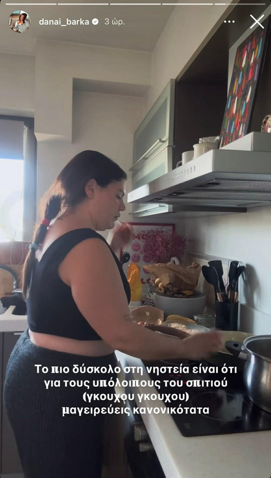 Μετά από αυτό το story βέβαια, δημοσίευσε ένα ακόμα, στο οποίο φτιάχνει πρωινό ή μεσημεριανό στον αγαπημένο της - αν καταλάβαμε σωστά από τα συμφραζόμενα - γράφοντας: