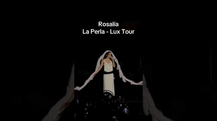 Πλαισιωμένη από χορευτές που φορούσαν μαύρα γάντια και δημιουργούσαν οπτικές ψευδαισθήσεις γύρω από το σώμα της, η Rosalía μεταμορφώθηκε σε ένα «ζωντανό γλυπτό» που άλλοτε θύμιζε την Αφροδίτη της Μήλου κι άλλοτε την Παναγία.
